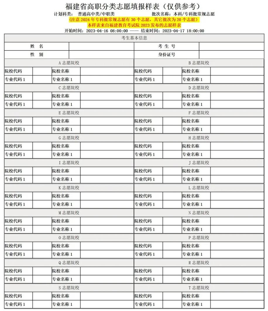 福建高職分類考試需要提前準備志愿樣表?怎么填?