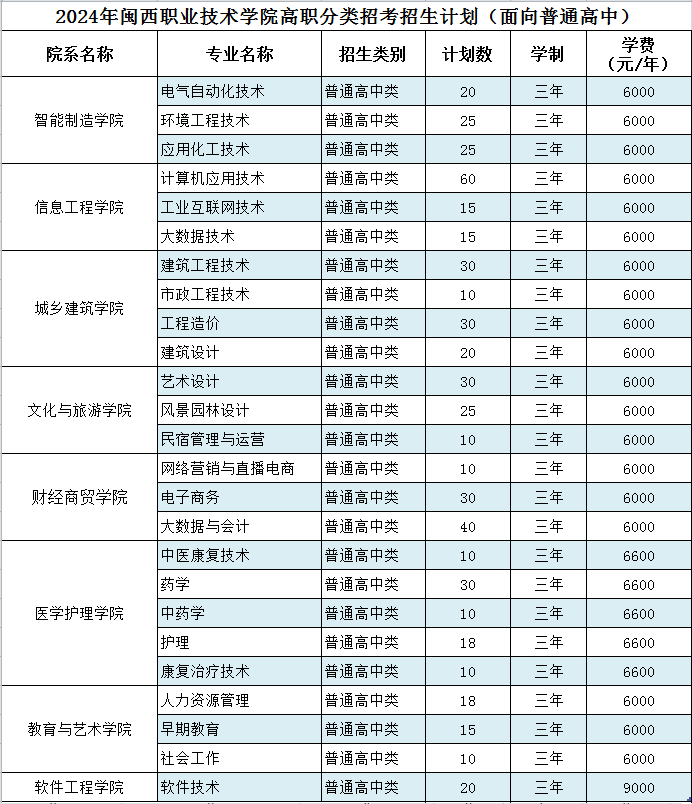 以上就是關于2024年閩西職業技術學院高職分類考試招生計劃表的相關內容,了解更多福建高職分類考試招生院校、職業技能測試成績查詢、志愿填報等相關資訊,歡迎關注福建高職分類考試網http://www.dengshiboli.com/