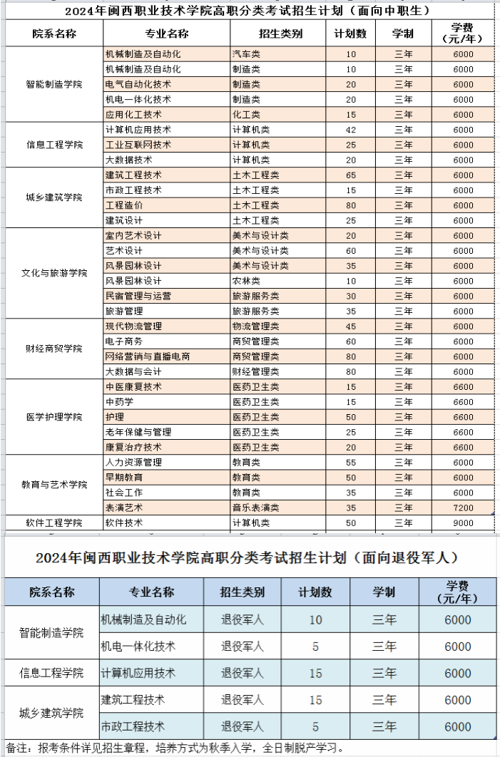 福建高職分類招考網分享2024年閩西職業技術學院高職分類考試招生計劃表,內容如下: