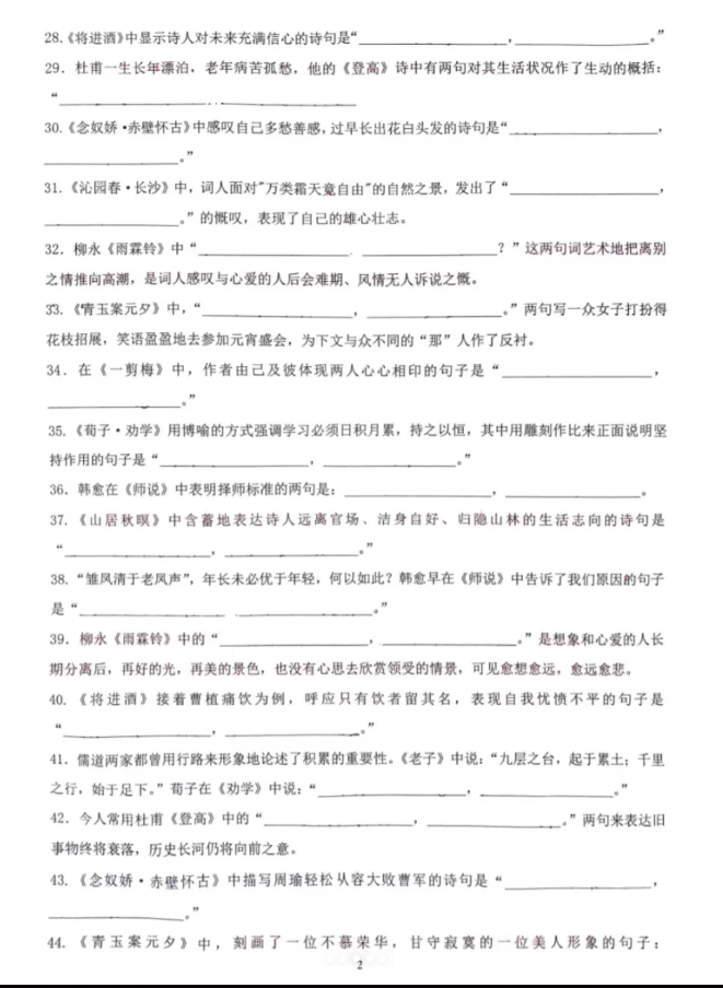 為了更好的備考福建高職分類考試,小編為大家整理了福建高職招考中職學考語文名句名篇練習題,一起來練一練吧!