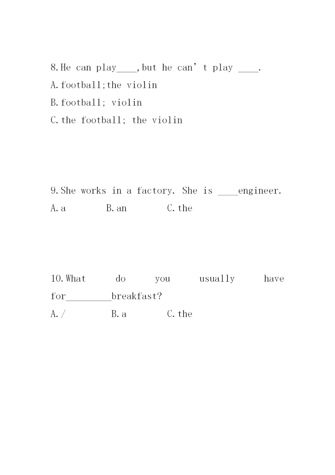 導(dǎo)讀:福建高職招考英語(yǔ)冠詞練習(xí)見(jiàn)下文,冠詞(Article)是一種虛詞,并非只存在于英語(yǔ)中,而是普遍存在于印歐語(yǔ)系和閃含語(yǔ)系中。冠詞在句子中一般不重讀,本身不能獨(dú)立使用,只能與名詞放在一起(一般用于名詞之前)幫助說(shuō)明名詞所指的人或事物。冠詞的類(lèi)型包括不定冠詞(IndefiniteArticle)、定冠詞(DefiniteArticle)、否定冠詞(NegativeArticle)、部分冠詞(PartitiveArticle)和零冠詞(ZeroArticle,即不用冠詞)。