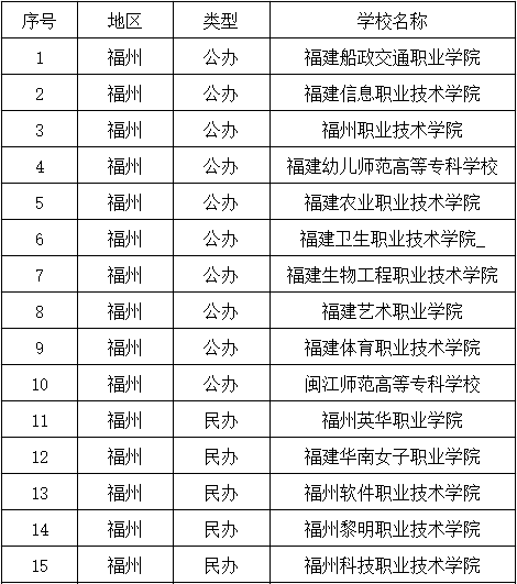 一、福州高職分類招考專科批招生的院校名單: