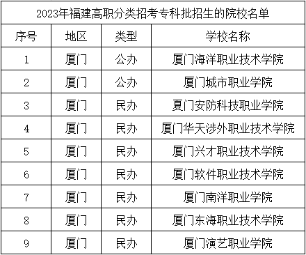 廈門高職分類招考專科批招生的院校名單
