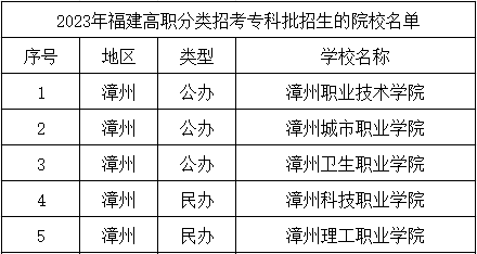 以下是福建高職分類考試網(wǎng)給大家分享的2023年漳州高職分類招考專科批招生的院校名單具體內(nèi)容,24年最新相關(guān)信息還沒出,一起來參考一下吧!