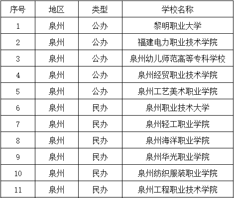 以下是福建高職分類考試網給大家分享的2023年泉州高職分類招考專科批招生的院校名單具體內容,24年最新相關信息還沒出,一起來參考一下吧!