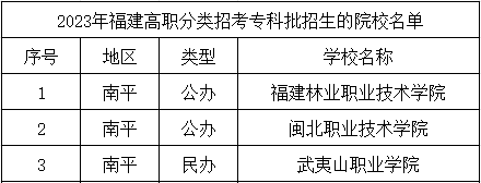 一、南平高職分類招考專科批招生的院校名單: