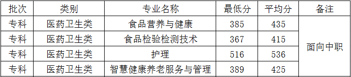 福建華南女子職業學院高職分類(醫藥衛生類)錄取分數線