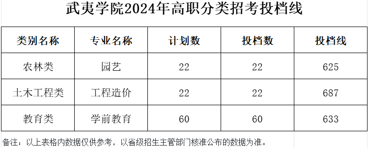 福建高職分類招考網給大家帶來武夷學院2024年高職分類招考分數線,內容如下: