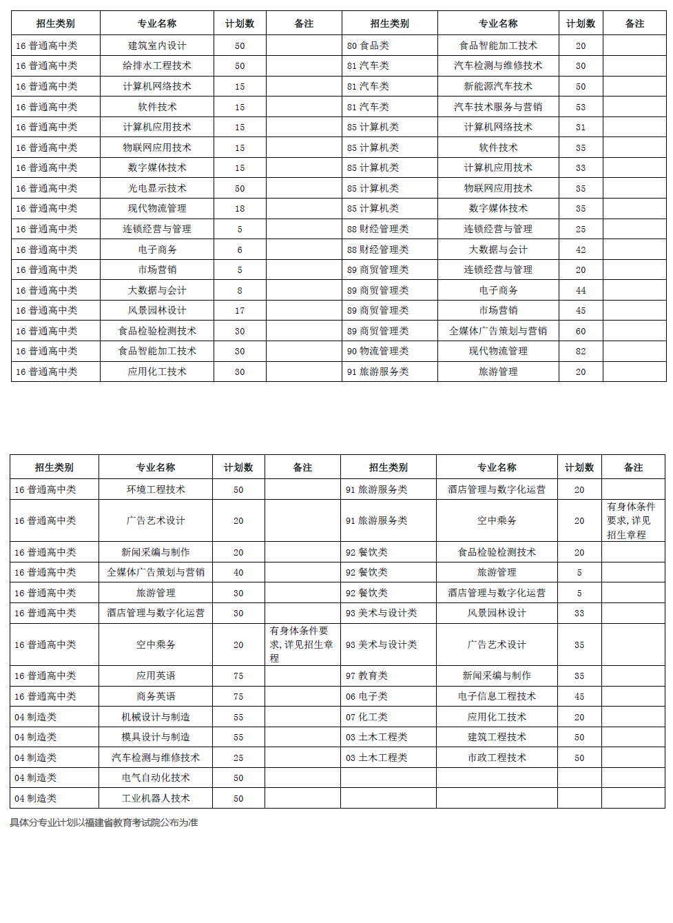 2021年漳州職業技術學院高職院校分類考試招生計劃表