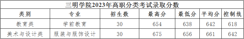 2023年三明學院高職分類考試招生專業錄取分數線: