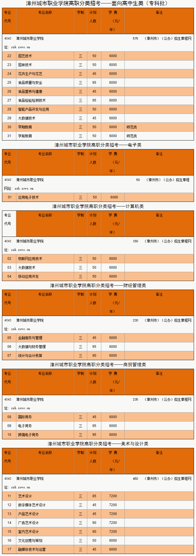 2024年漳州城市職業(yè)學院高職分類考試招生計劃
