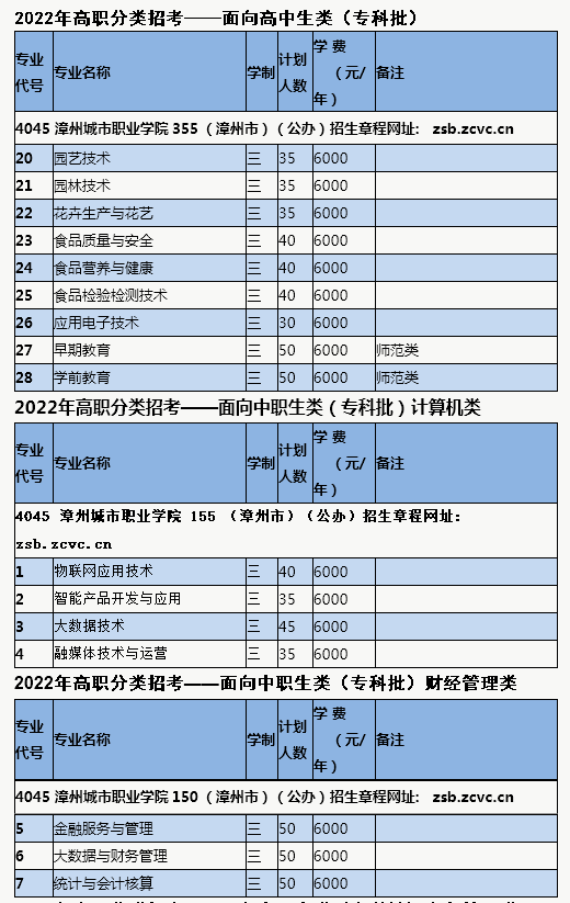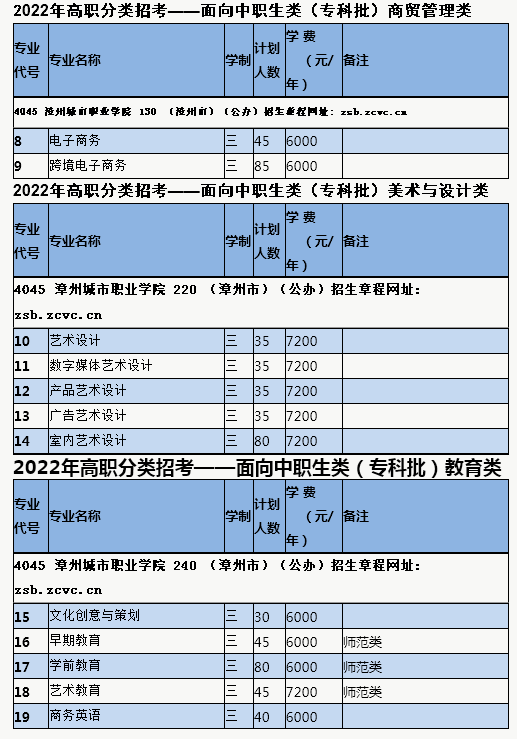 漳州城市職業(yè)學(xué)院2022年高職分類(lèi)考試分類(lèi)別分專(zhuān)業(yè)招生計(jì)劃