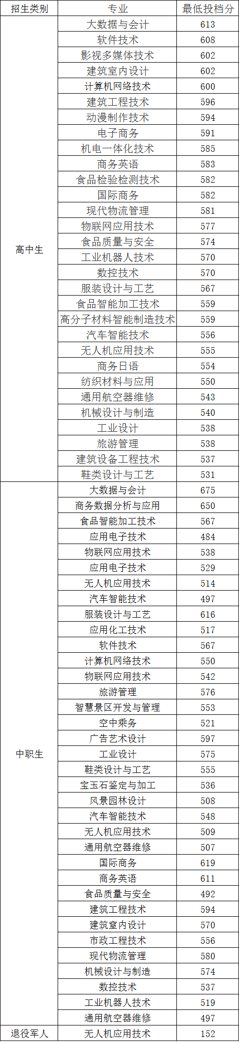 黎明職業大學2023年高職分類錄取分數線