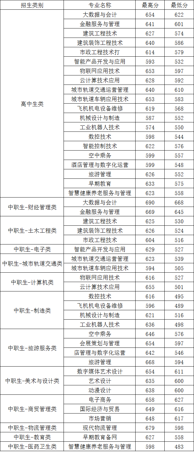 廈門城市職業學院高職分類錄取分數線