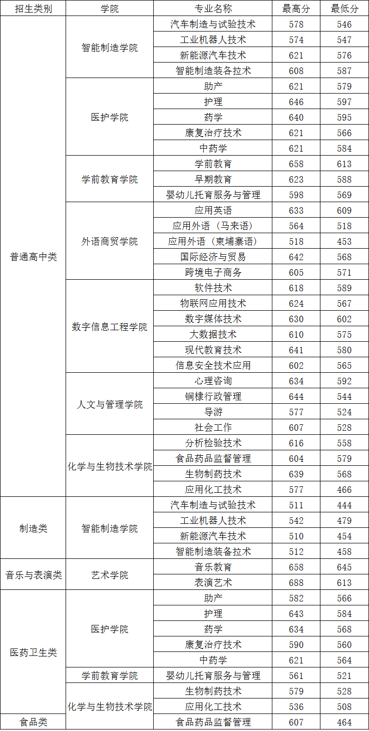 2023年閩江師范高等專科學校高職分類錄取分數線: