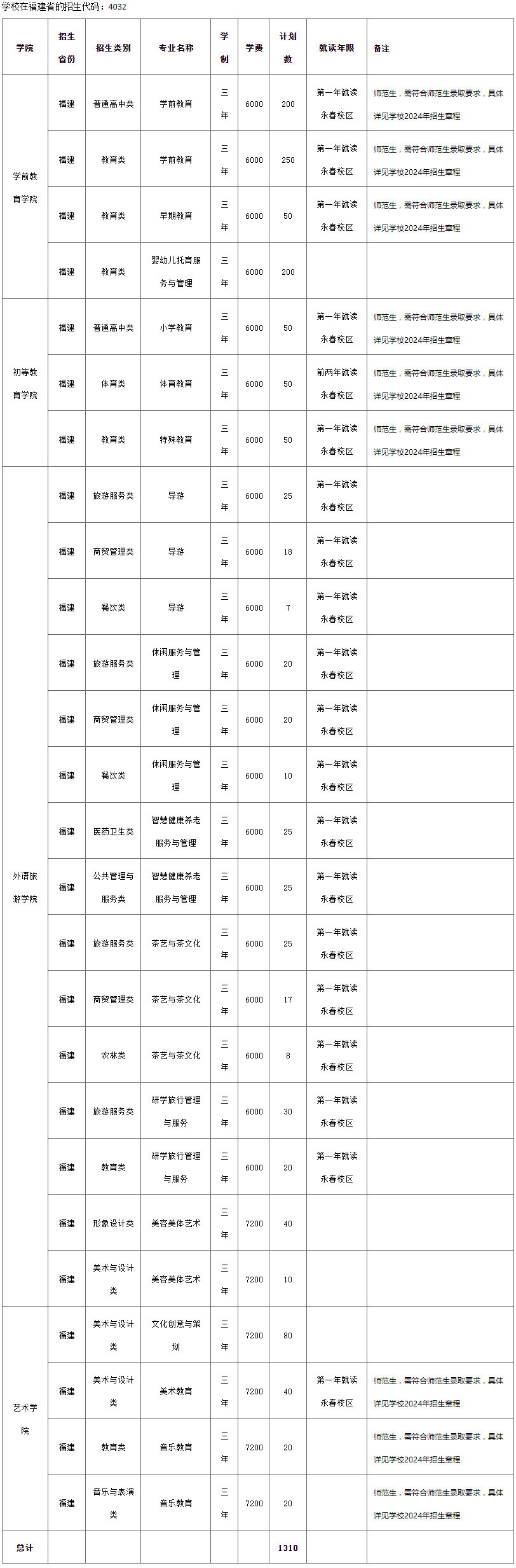 2024年泉州幼兒師范高等專科學校高職院校分類考試招生計劃(春季)