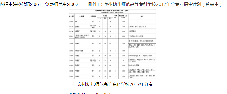 泉州幼兒師范高等專科學(xué)校2017年分專業(yè)招生計(jì)劃
